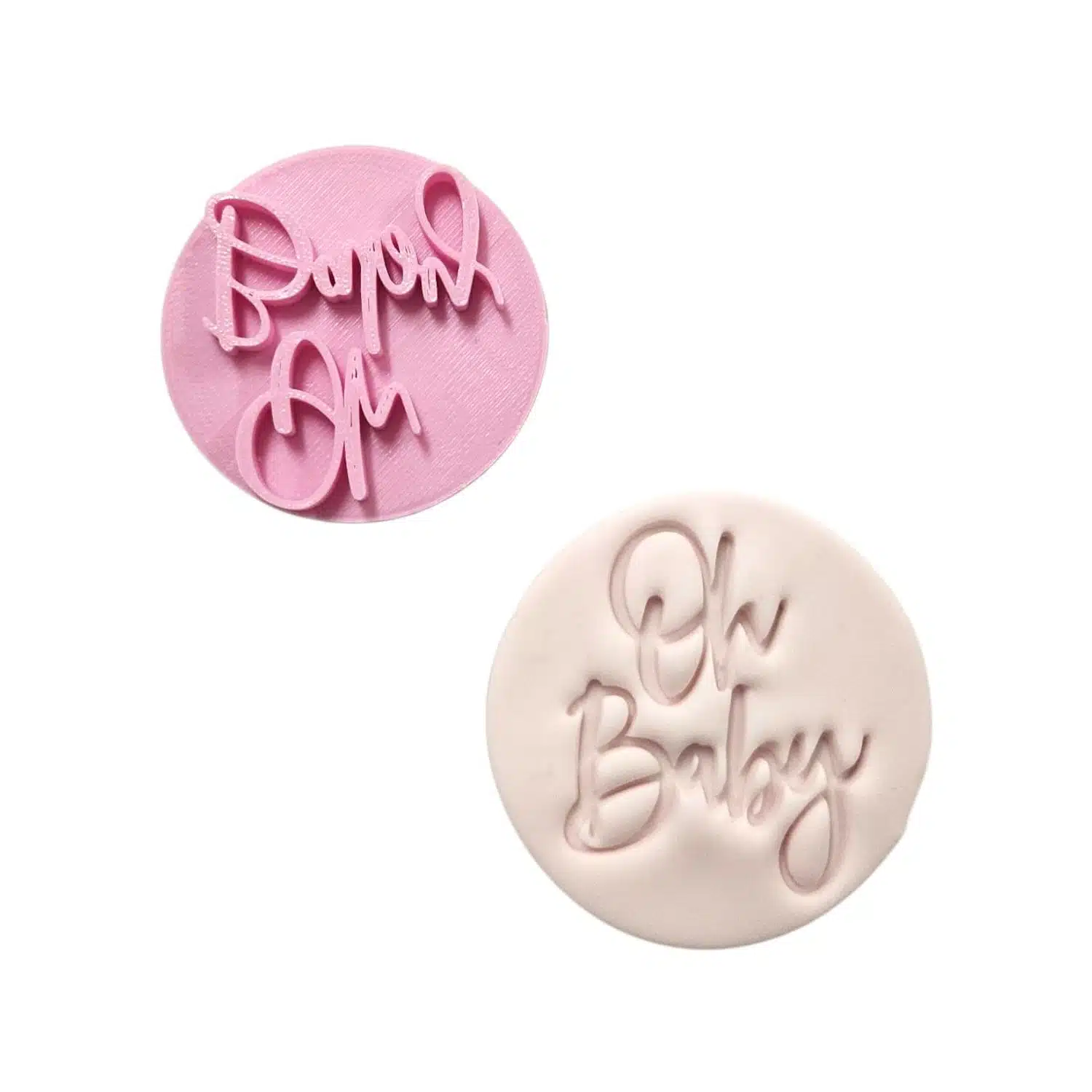 Leuke impressie stempel met de tekst OH Baby in een formaat geschikt voor cupcakes! Maar ook geschikt voor cakesicles, macarons, etc.