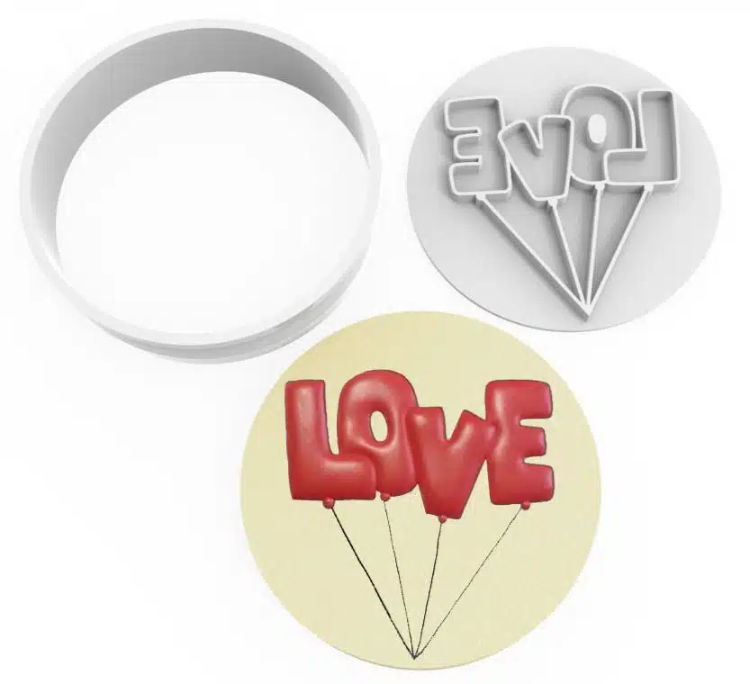 Leuk voor jouw Valentijn koekjes deze ronde uitsteker met impressie van de tekst “Love”. Gebruik de impressie in fondant of marsepein en plak dit op het koekje of plaats de impressie rechstreeks in het koekdeeg.