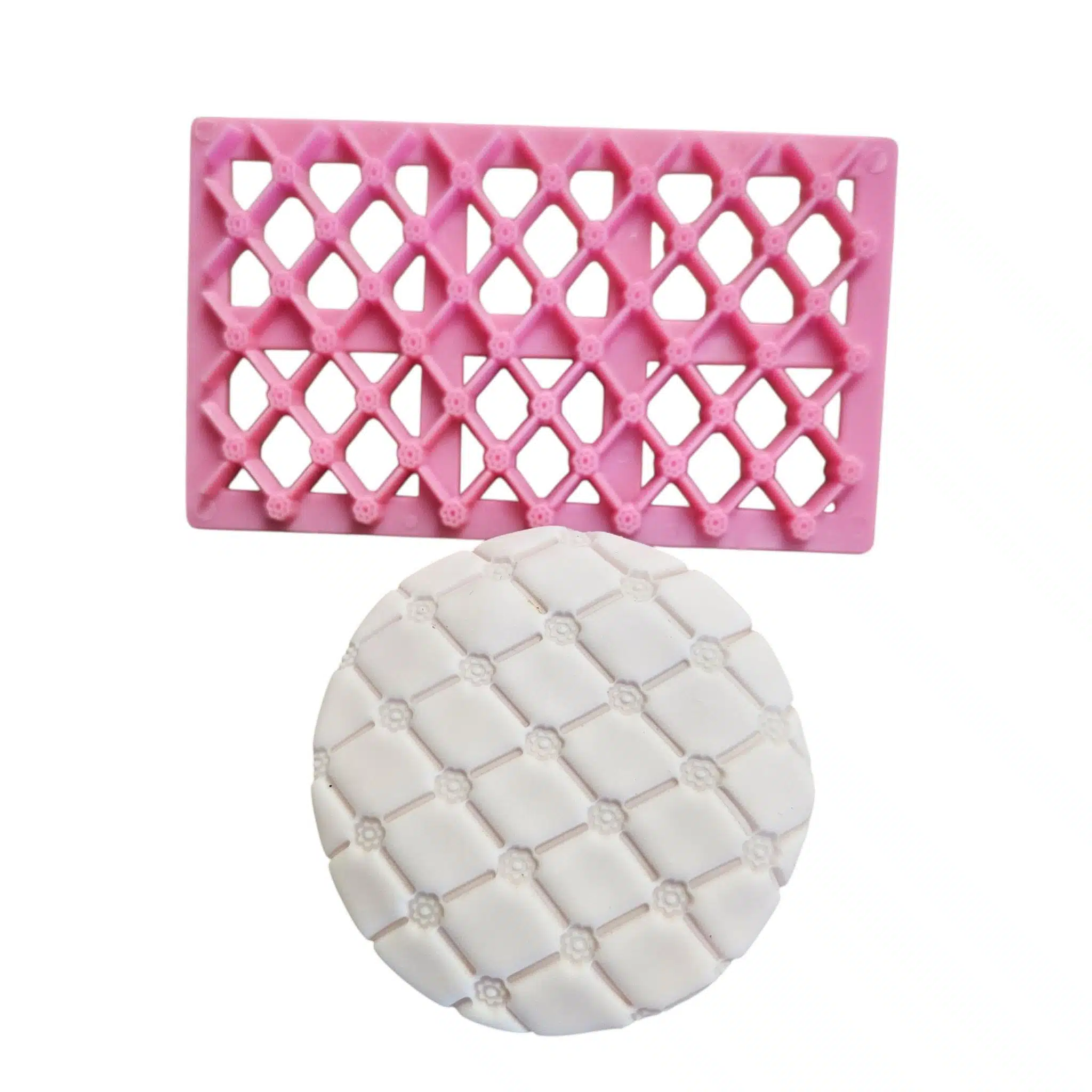 Handige tool om een impressie te maken in de vorm van een trellis aan de zijkant van jouw taart. In de kruising van de trellis zit een leuke impressie van een bloem.