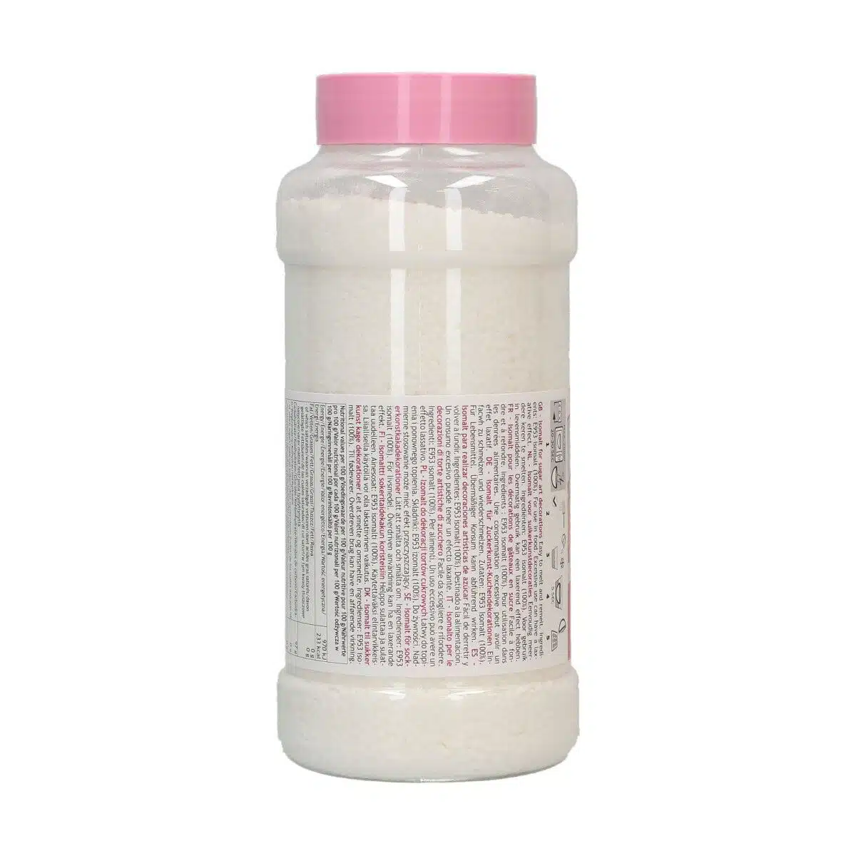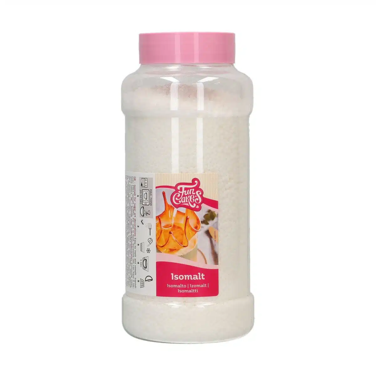 Isomalt is een suikervrije zoetstof die tot hoge temperaturen verwarmd kan worden zonder zijn heldere kleur of zoetigheid te verliezen. Isomalt kan daarom gesmolten worden en weer omgevormd in elke gewenste vorm. Leuk om indrukwekkende taartdecoraties zoals edelstenen, ramen/glas, mozaïeken en geode cakes mee te maken. Zo zien we isomalt vaak terug bij Frozen cakes! Isomalt is minder zoet dan suiker, maar kan gemengd worden met andere suikervervangers om het zoeter te maken.
