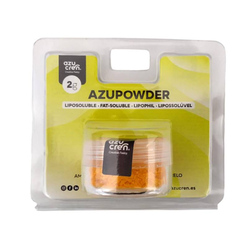 Azupowder is een hoogwaardige vetoplosbare poederkleurstof, ontwikkeld voor toepassingen waarin wateroplosbare kleurstoffen minder geschikt zijn. Dankzij de samenstelling mengt de kleur zich optimaal met vetrijke producten zoals chocolade, botercrème, ganache en fondant, zonder de structuur of textuur te beïnvloeden.