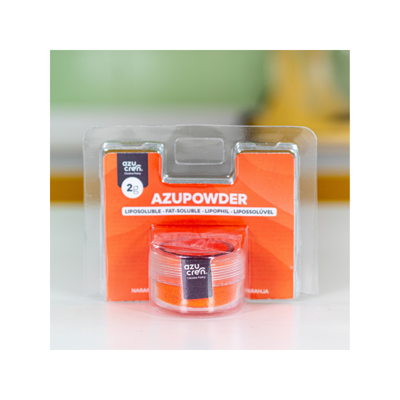 Azupowder is een hoogwaardige vetoplosbare poederkleurstof, ontwikkeld voor toepassingen waarin wateroplosbare kleurstoffen minder geschikt zijn. Dankzij de samenstelling mengt de kleur zich optimaal met vetrijke producten zoals chocolade, botercrème, ganache en fondant, zonder de structuur of textuur te beïnvloeden.