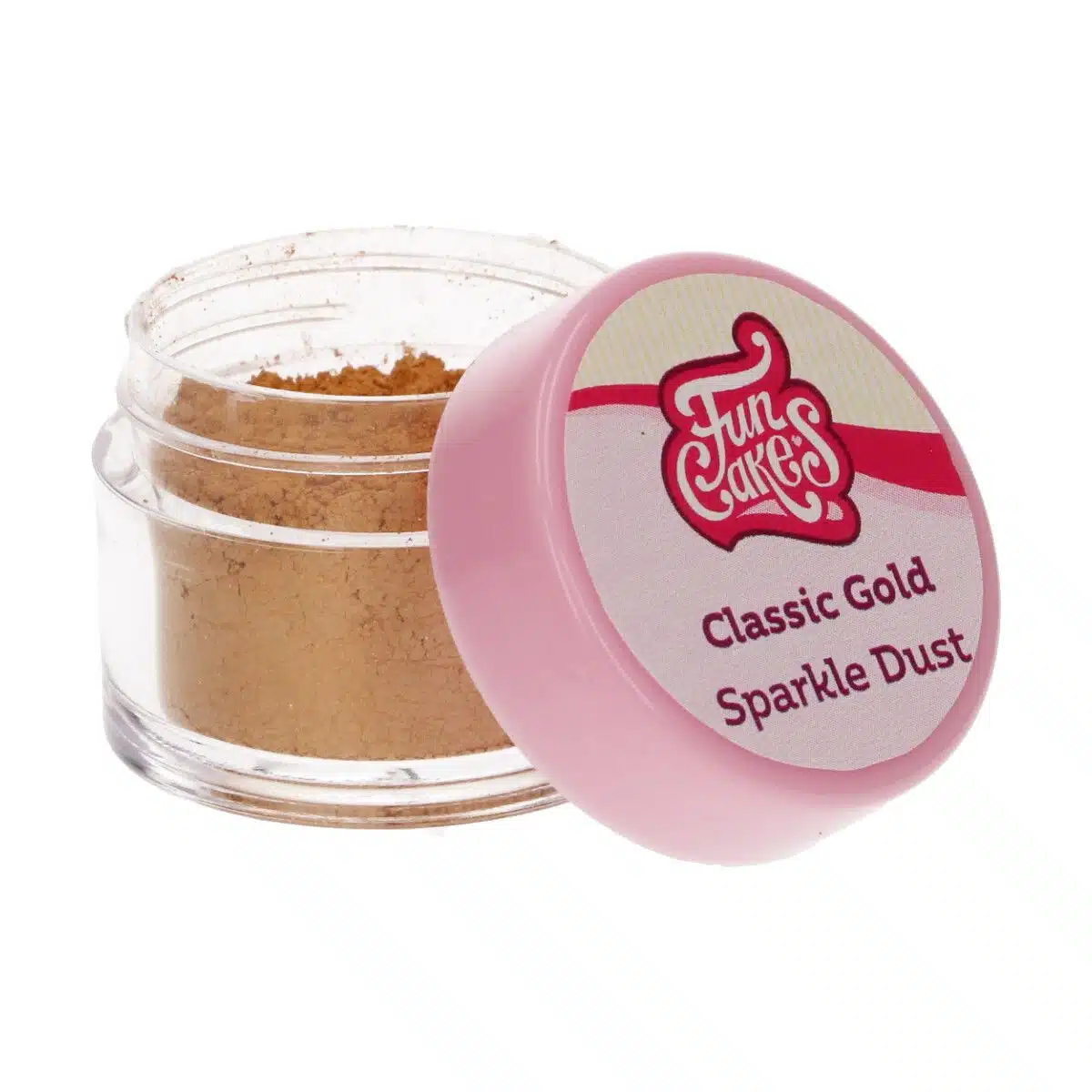Voeg een subtiele goude glans toe aan jouw taarten, fondant, decoraties van bloemenpasta of suikerbloemen. Eenvoudig aan te brengen met een kwastje of maak je eigen eetbare verf door rejuvenator spirit of een ander product op basis van alcohol toe te voegen. De FunCakes Sparke Dust range zal jouw taarten een geweldige look en feel geven. De producten zijn verkrijgbaar in diverse kleuren, 100% eetbaar en gemakkelijk in gebruik. Voor gebruik in voedsel.