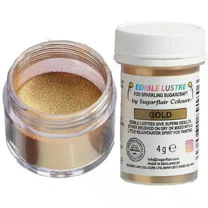 Sugarflair’s Edible Lustre in Gold is een premium kwaliteit, veelzijdig en veilig product dat een prachtige glans geeft aan jouw creaties. De perfecte aanvulling om je creaties dat extraatje te geven! Deze eetbare glans kan direct met een penseel worden aangebracht en geeft je baksels een prachtige glans die iedereen zal opvallen.