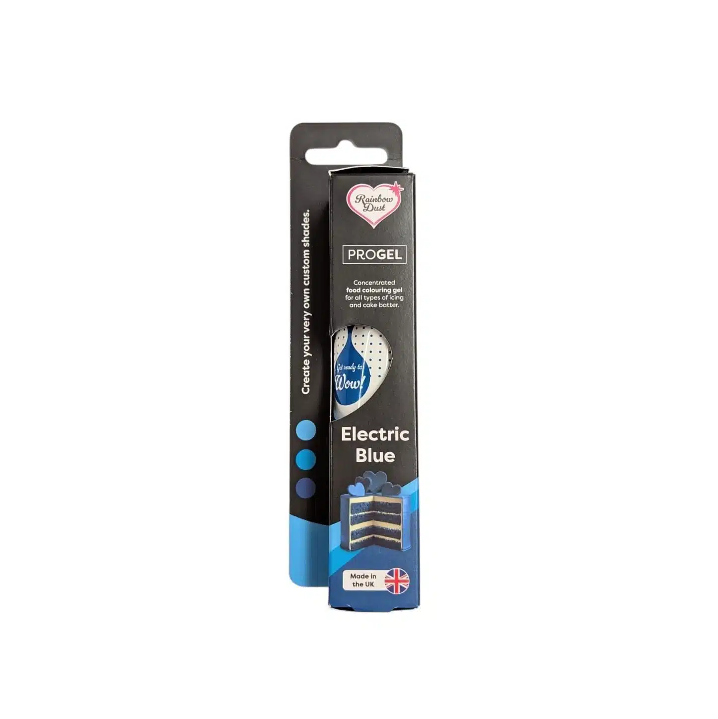 De Rainbow Dust ProGel is zeer geconcentreerd en de nieuwe standaard in het kleuren van voedsel! Een kleine hoeveelheid ProGel is nodig om een rijke, diepe kleur te geven aan je creaties. Wat inhoud dat de tubes lang mee gaan. Voeg eenvoudig een kleine hoeveelheid ProGel toe aan je fondant, marsepein, botercrème, biscuit en meer en zie het veranderen in de gewenste kleur. Elke gel is verpakt in een kleur gecoördineerde en gemakkelijk te gebruiken plastic tube. De tubes bevatten een zegel onder de schroefdop. Verwijder de zegel en knijp eenvoudig de gel uit de tube. Hoe te gebruiken: voeg de gel toe aan de fondant of marsepein en kneed het door totdat de kleur zich mengt. Kneed het goed door tot het gewenste resultaat is behaald. Nu is de gekleurde fondant of marsepein klaar om te gebruiken op je taart!
