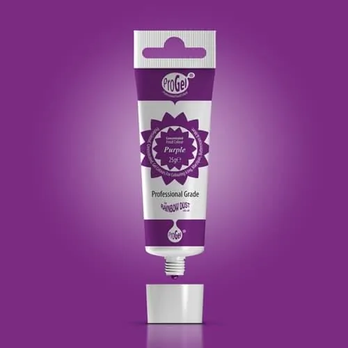 De Rainbow Dust ProGel is zeer geconcentreerd en de nieuwe standaard in het kleuren van voedsel! Een kleine hoeveelheid ProGel is nodig om een rijke, diepe kleur te geven aan je creaties. Wat inhoud dat de tubes lang mee gaan. Voeg eenvoudig een kleine hoeveelheid ProGel toe aan je fondant, marsepein, botercrme, biscuit, candy melts en meer en zie het veranderen in de gewenste kleur. Elke gel is verpakt in een kleur gecordineerde en gemakkelijk te gebruiken plastic tube. De tubes bevatten een zegel onder de schroefdop. Verwijder de zegel en knijp eenvoudig de gel uit de tube. Hoe te gebruiken: voeg de gel toe aan de fondant of marsepein en kneed het door totdat de kleur zich mengt. Kneed het goed door tot het gewenste resultaat is behaald. Nu is de gekleurde fondant of marsepein klaar om te gebruiken op je taart! Ingredinten: glycerine, siliciumdioxide, propyleenglycol, kleurstoffen: E122, E133. E122 kan de activiteit of oplettendheid van kinderen nadelig benvloeden. Allergenen: noten vrij, GM vrij, gluten vrij, geschikt voor vegetarirs, gecertificeerd Kosher en geschikt voor Halal diten. Inhoud: 25 gram.