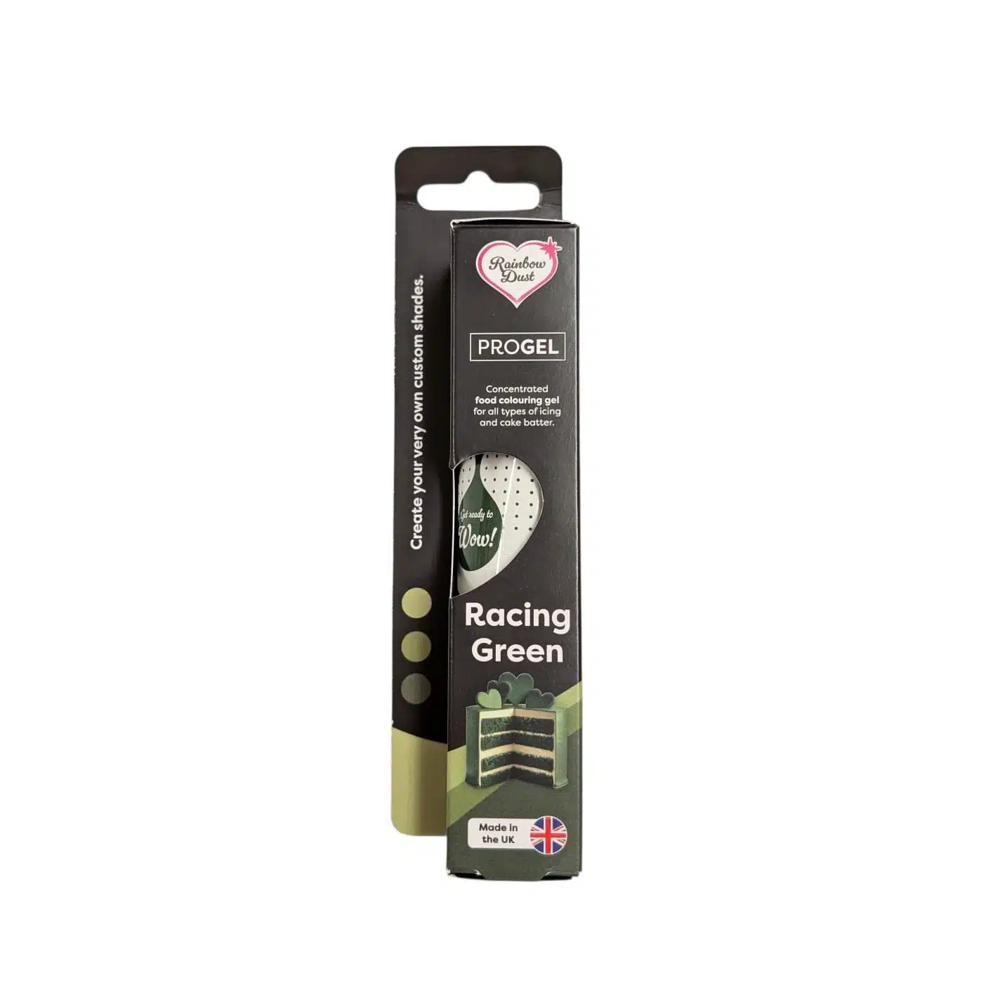 De Rainbow Dust ProGel is zeer geconcentreerd en de nieuwe standaard in het kleuren van voedsel! Een kleine hoeveelheid ProGel is nodig om een rijke, diepe kleur te geven aan je creaties. Wat inhoud dat de tubes lang mee gaan. Voeg eenvoudig een kleine hoeveelheid ProGel toe aan je fondant, marsepein, botercrme, biscuit, candy melts en meer en zie het veranderen in de gewenste kleur. Elke gel is verpakt in een kleur gecordineerde en gemakkelijk te gebruiken plastic tube. De tubes bevatten een zegel onder de schroefdop. Verwijder de zegel en knijp eenvoudig de gel uit de tube. Hoe te gebruiken: voeg de gel toe aan de fondant of marsepein en kneed het door totdat de kleur zich mengt. Kneed het goed door tot het gewenste resultaat is behaald. Nu is de gekleurde fondant of marsepein klaar om te gebruiken op je taart! Ingredinten: glycerine, siliciumdioxide, propyleenglycol, kleurstoffen: E102/E104, E133, E155.