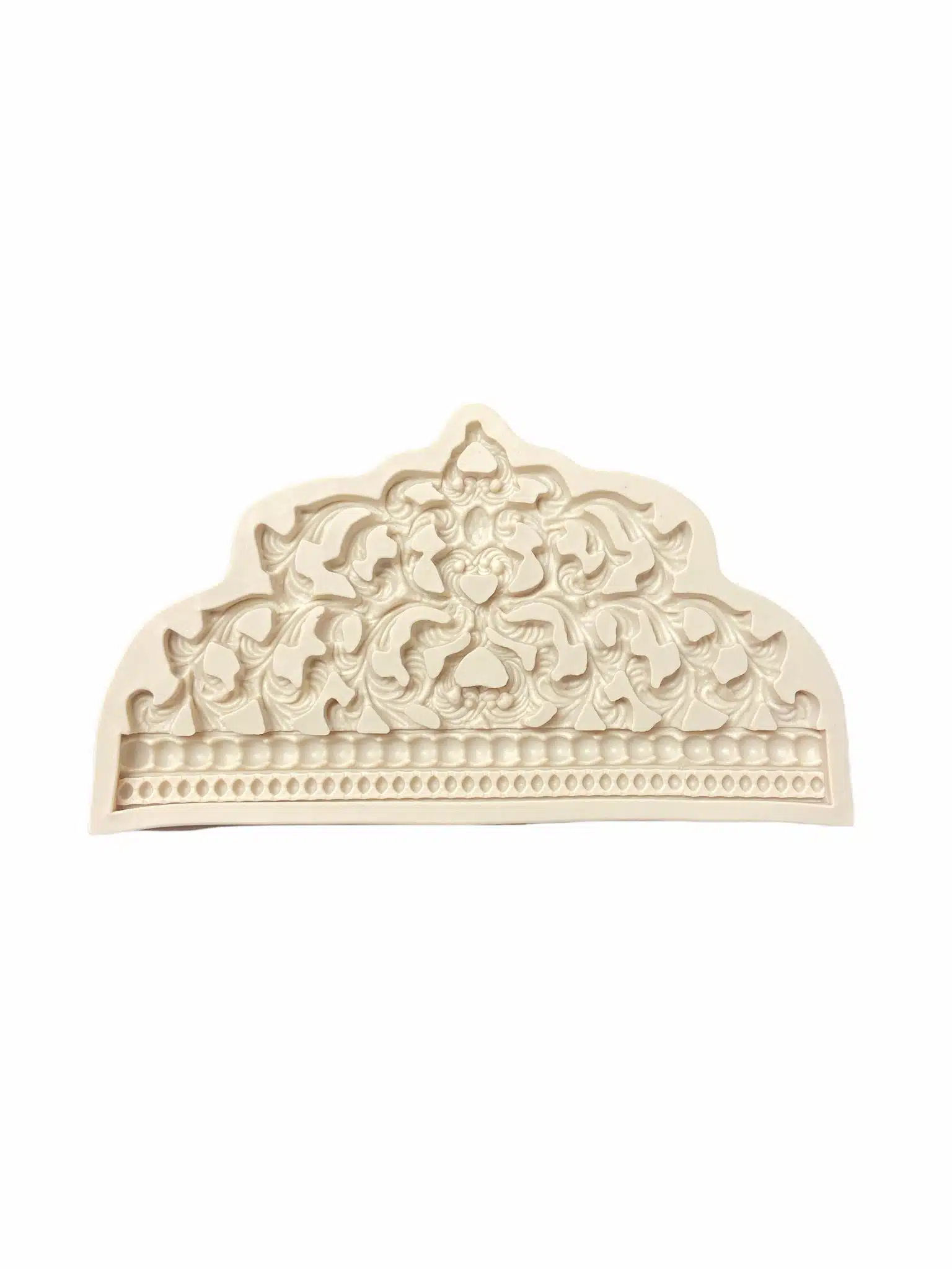 Met deze siliconen mal, maak je gemakkelijk een grote kroon voor op jouw taart. Gebruik deze mal bij voorkeur met een modelling paste of een gumpaste en laat deze uitharden op een fles omwikkeld met bakpapier, zodat je de kroon er makkelijk weer vanaf krijgt wanneer hij uitgehard is. Daarna te bewerken met lustre dust of spray voor een mooi resultaat!