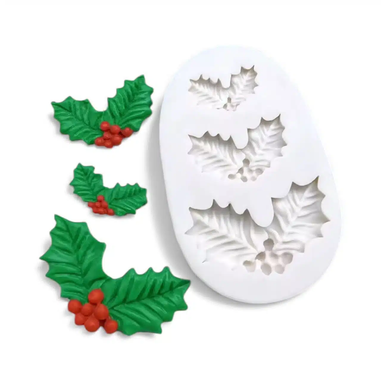 Leuke mal voor het opleuken van al jouw Kerst lekkernijen! In de mal zitten drie maten Holy Leaf met besjes.