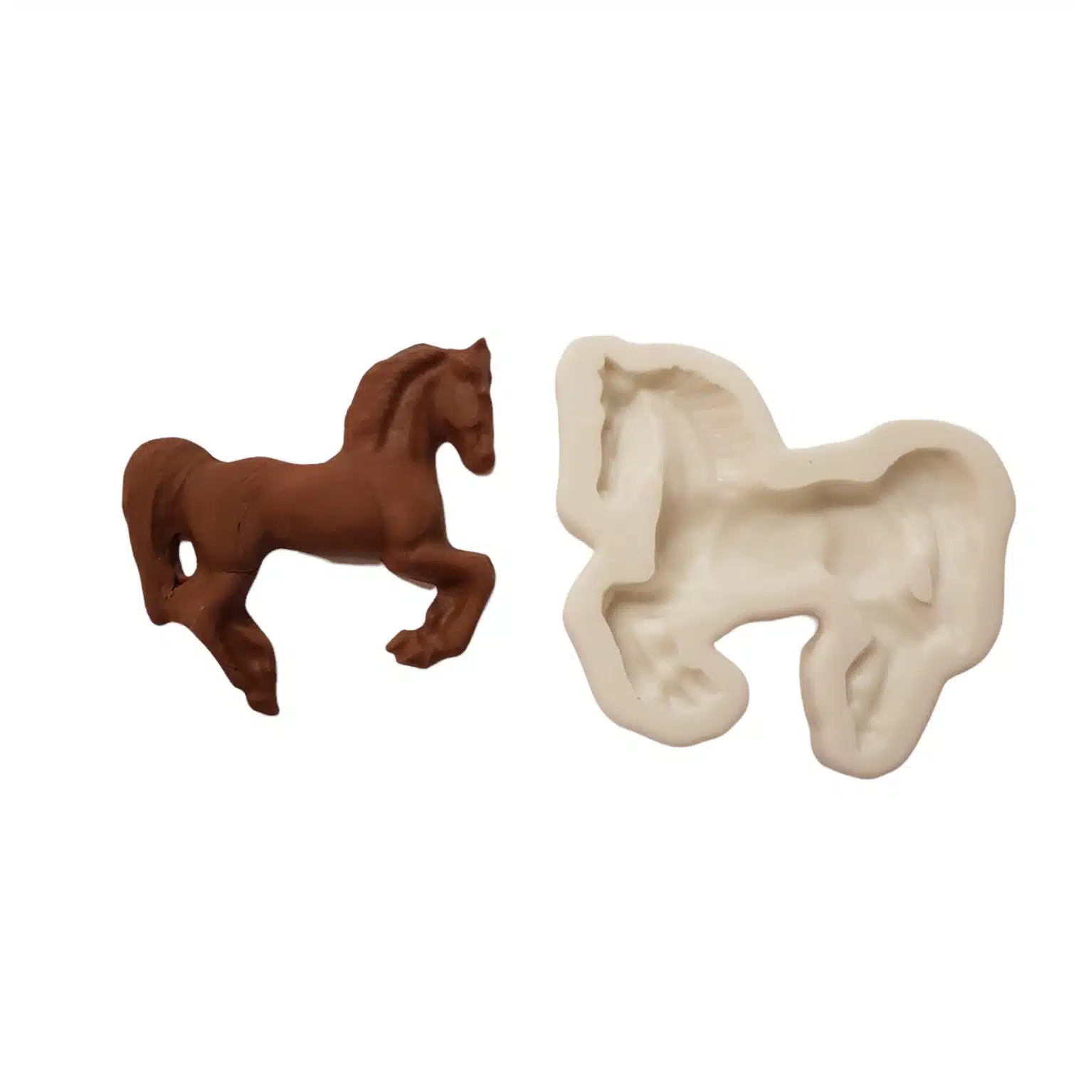 Mooie mal van een paard. De siliconen mallen kunnen gebruikt worden met rolfondant, sugar florist paste (gum paste), modelling paste (Mexican paste), marsepein, chocola, candy melts, ismolalt en koud porselein. Tip: plaats de gevulde vorm even in de koelkast of vriezer om deze gemakkelijker te lossen. Onderhoud: reinig de vorm in een warm sopje, spoel af en laat drogen bij voorkeur aan de lucht, anders blijven er vezels van de theedoek in de vorm.