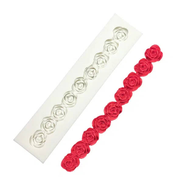 Maak de onderzijde van jouw taart mooi af met deze rozenborder mal.