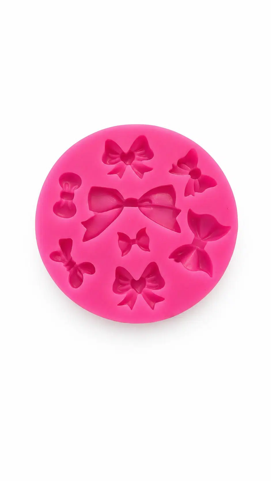 Siliconen mal met daarin meerdere verschillende strikjes. Afmetingen van de strikjes variërend van 4,5 cm tot 1,5 cm. De siliconen mallen kunnen gebruikt worden met rolfondant, sugar florist paste (gum paste), modelling paste (Mexican paste), marsepein, chocola, candy melts, ismolalt en koud porselein. Tip: plaats de gevulde vorm even in de koelkast of vriezer om deze gemakkelijker te lossen. Onderhoud: reinig de vorm in een warm sopje, spoel af en laat drogen – bij voorkeur aan de lucht, anders blijven er vezels van de theedoek in de vorm.
