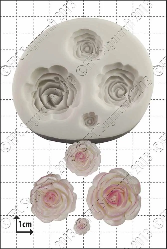 Handige siliconen mal van FC Sugarcraft met vier verschillende maten schattige roosjes.