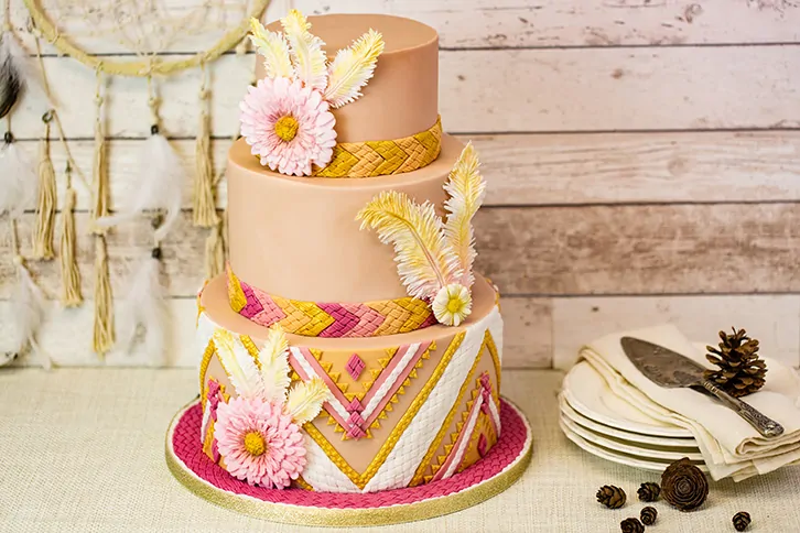 Maak prachtige native en boho chic stijl taarten met deze native feathers mould van Karen Davies. De mould bevat vier gedetailleerde veren, twee verschillende soorten strengen, kralen en een kwast. Combineer de verschillende figuren en de mogelijkheden zijn eindeloos! De Karen Davies mould is flexibel en gemaakt van hoogwaardige siliconen. Gebruiksaanwijzing: Kneed je marsepein of fondant goed door. Meng de fondant eventueel met wat tylo poeder. Maak een balletje en druk de marsepein of fondant van binnen naar buiten toe goed aan in de mal. Verwijder dan de vorm uit de mal. Indien nodig de mal vooraf wat poederen met wat maïzena om de fondant/marsepein makkelijk uit de mal te krijgen. Was en droog de mould goed voor gebruik. Afmeting mold: circa 21 x 12 cm.