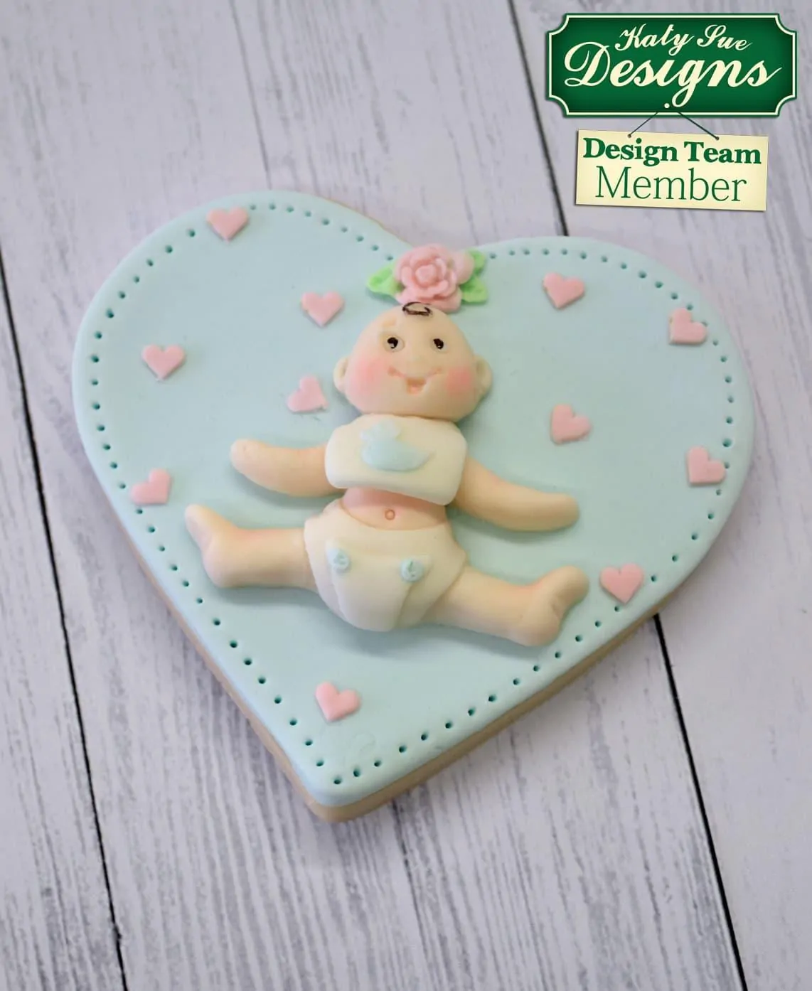Siliconen mal met daarin een schattige baby. Maak met deze mold gemakkelijk een figuurtje zonder te boetseren. Je kan het figuurtje in verschillende posities neerzetten. Afmetingen: Baby 61mm x 49mm x 13mm/ speen 7mm x 9mm x 4mm. Alle siliconen mallen van Katy Sue moulds zijn gemaakt in Engeland en zijn voedselveilig. De mallen kunnen gebruikt worden met rolfondant, sugar florist paste (gum paste), modelling paste (Mexican paste), marsepein, chocola, candy melts, ismolalt en koud porselein.