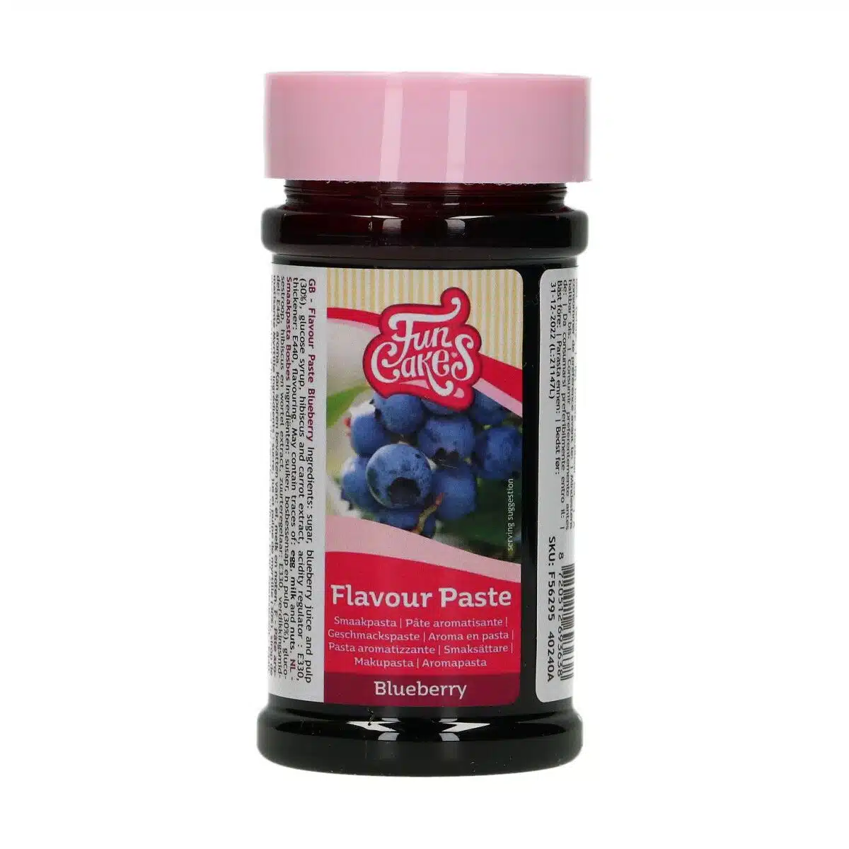 Deze FunCakes smaakpasta heeft een heerlijke bosbes smaak en is ideaal voor het op smaak brengen van botercrème, bavarois, ijs en diverse vullingen.