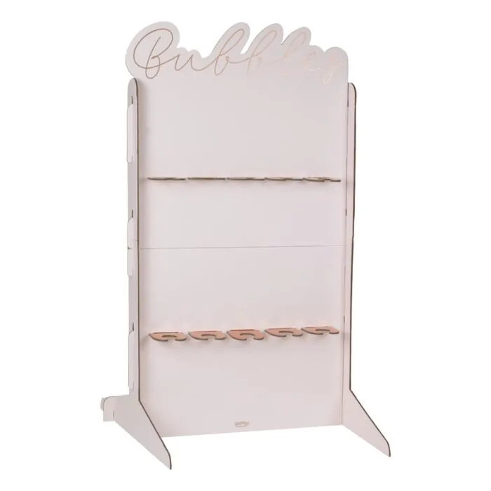 Op jouw Sweet Table mag deze gave Bubbles wall niet ontbreken! In deze stevige wand hang je tot 10 champagne glazen.