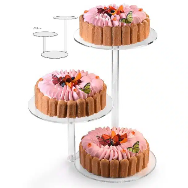Mooie taartstandaard met 3-lagen geheel van transparante onderdelen.