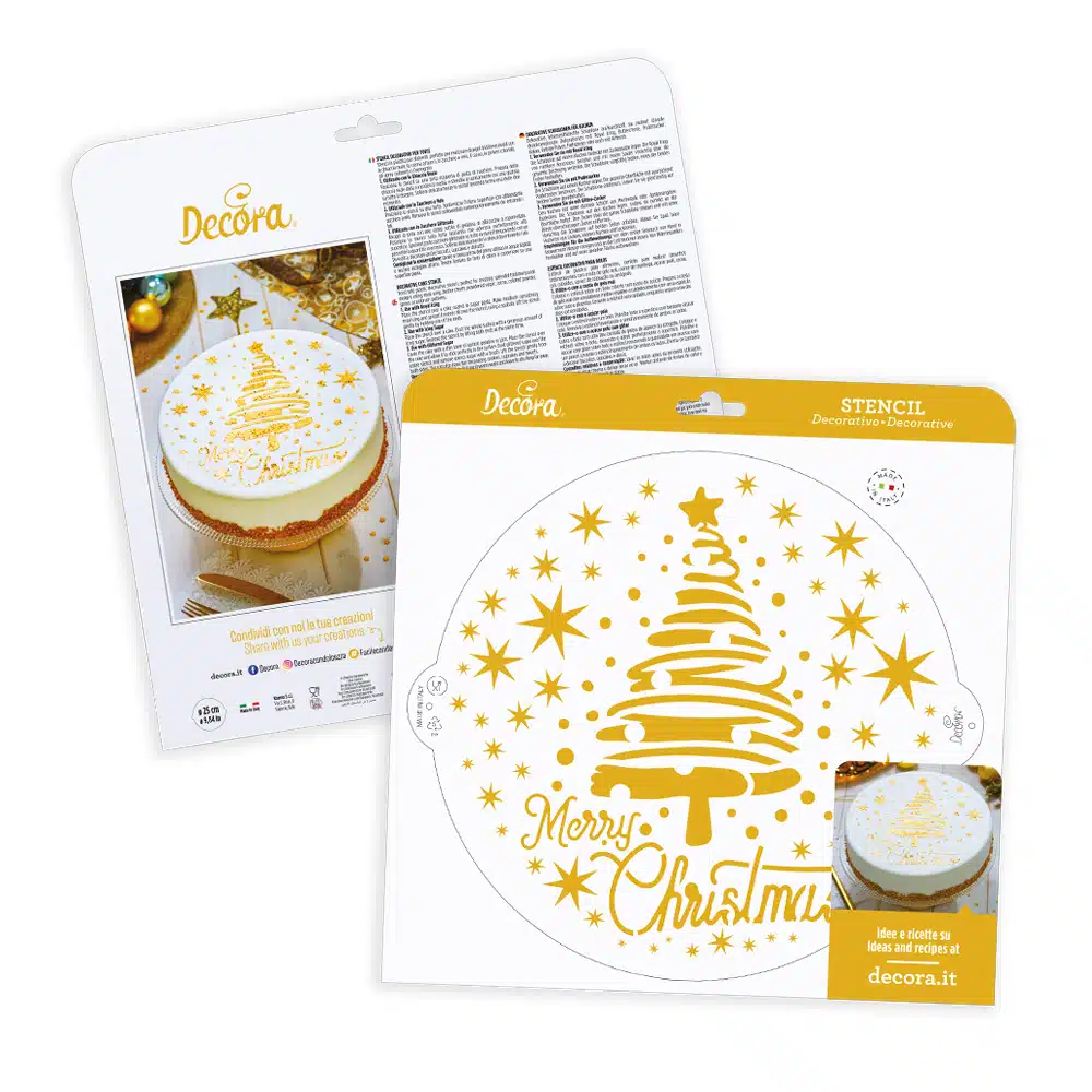 Decoratief Kerst sjabloon van food-grade plastic; perfect voor het maken van mooie ontwerpen op taarten, traktaties en koekjes met royal icing, botercrème, poedersuiker, cacao, kleurenspray of airbrush.