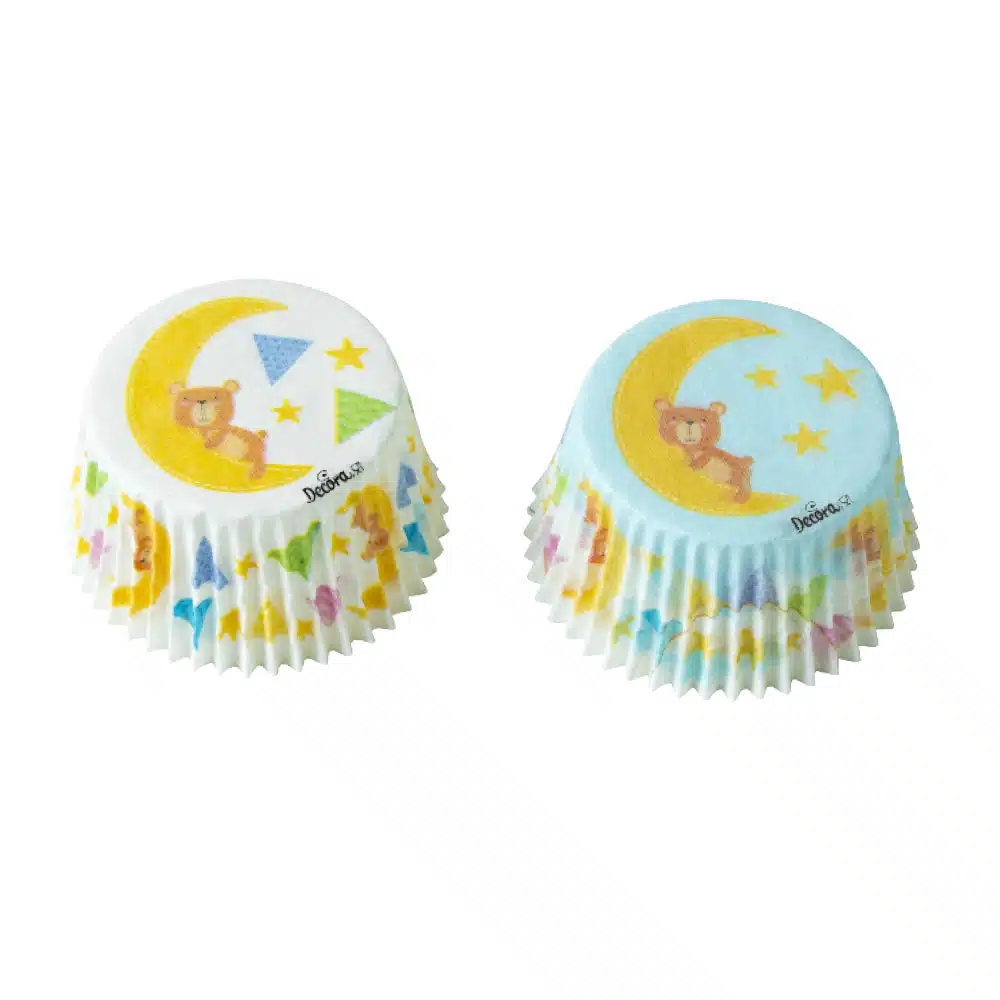Schattige cupcakebakjes met een zoete berenprint. Leuk voor geboorte cupcakes!