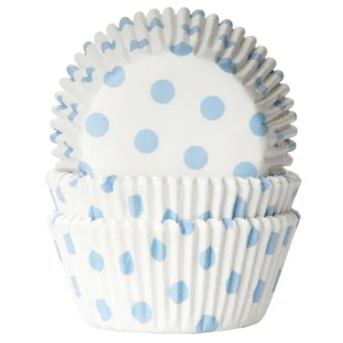 Baking Cups van House of Marie met een mooi design, stippen wit/baby blauw, geven jouw cupcakes een bijzondere uitstraling. Deze baking cups zijn gemaakt van een extra zware kwaliteit vetvrij papier, voor een mooi bakresultaat. De cups blijven vormvast en behouden hun kleur tijdens het bakken. Het vetwerende papier zorgt ervoor dat de cupcakes en de vulling eenvoudig zijn los te maken uit de baking cups. Inhoud 50 stuks. Afmetingen 50 x 33 mm. Gebruik de baking cups in combinatie met een muffin bakvorm voor optimaal resultaat.