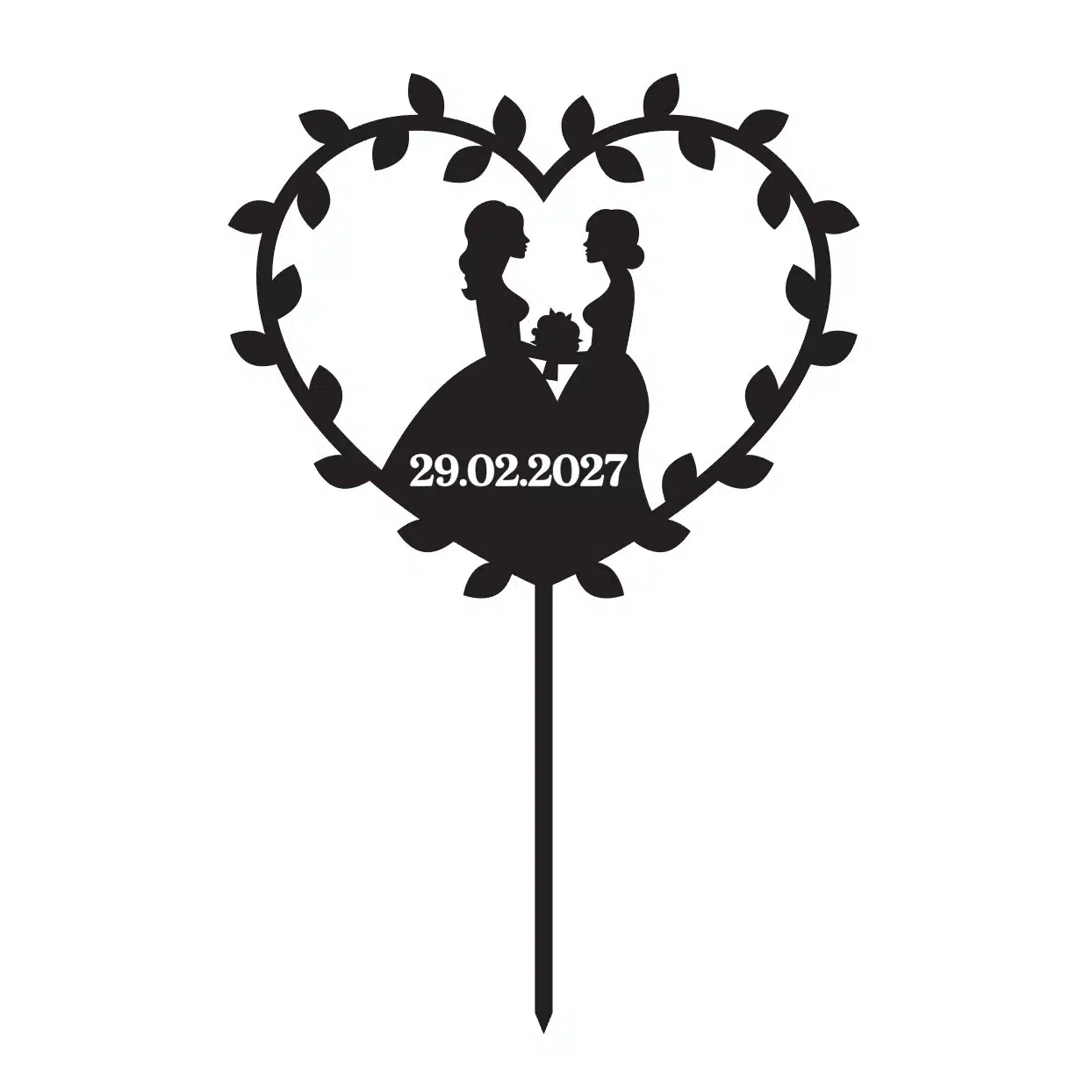Het online voorbeeld is weergegeven in het zwart, maar uiteraard wordt jouw topper gesneden in de kleur of het materiaal dat jij kiest.