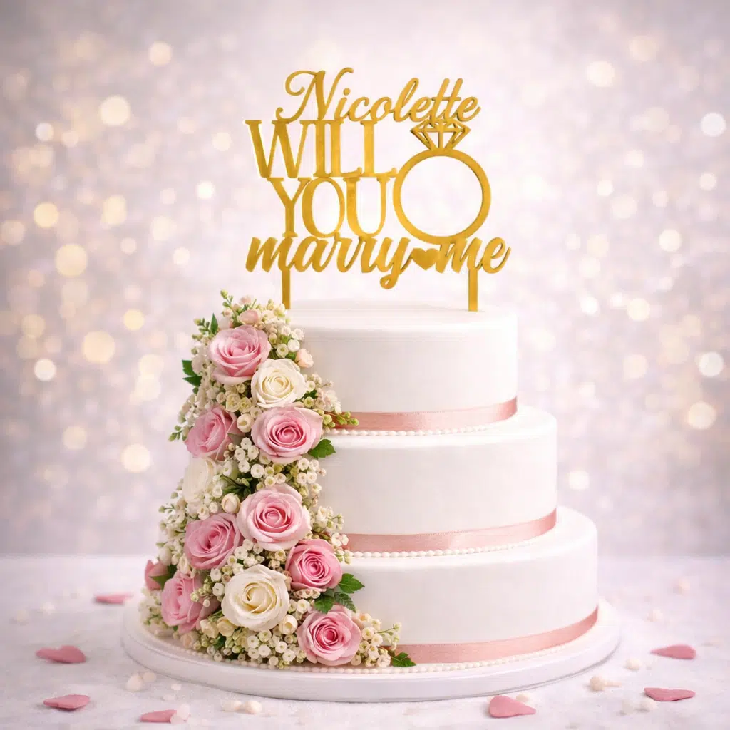 Maak jouw taart extra bijzonder met een gepersonaliseerde taarttopper van acryl of hout. Perfect voor een bruiloft, jubileum, verjaardag of ander feestelijk moment. Iedere topper wordt speciaal voor jou op maat gemaakt met de naam van jouw keuze.