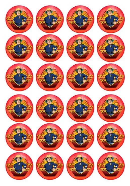 Eetbare Cupcakeprint Brandweerman Sam 1 – 24 cupcake rondjes