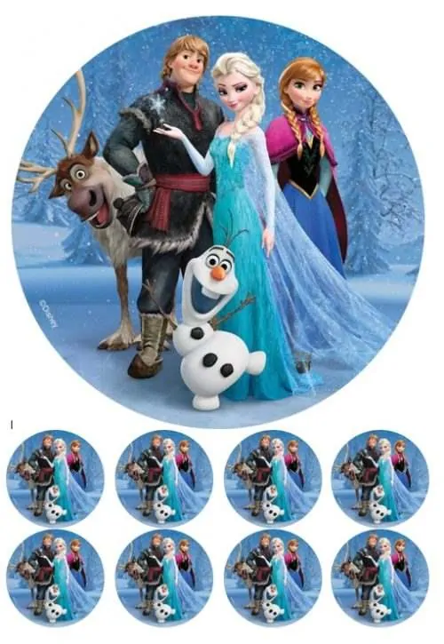 Eetbare Taartprint Frozen Cast 2 – 18 cm rond + 8 cupcake rondjes