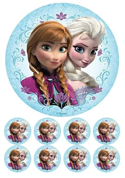 Eetbare Taartprint Frozen Elsa & Anna 3 – 18 cm rond + 8 cupcake rondjes