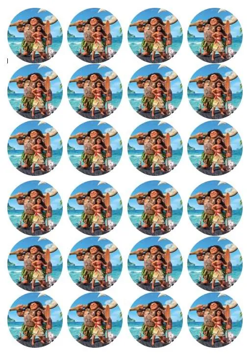 Eetbare Cupcakeprint Moana 1 – 24 cupcake rondjes