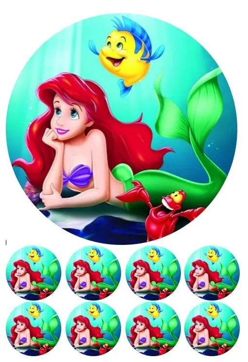 Eetbare Taartprint The Little Mermaid 1 – 18 cm rond+ 8 cupcake rondjes