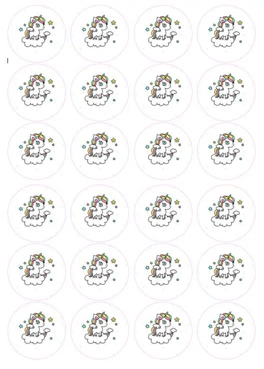 Eetbare Cupcakeprint Unicorn 1 – 24 cupcake rondjes