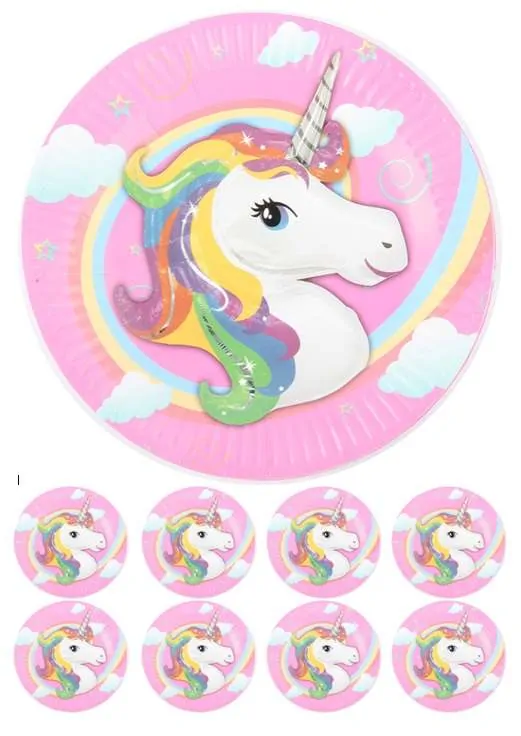 Eetbare Taartprint Unicorn 2 – 18 cm rond + 8 cupcake rondjes