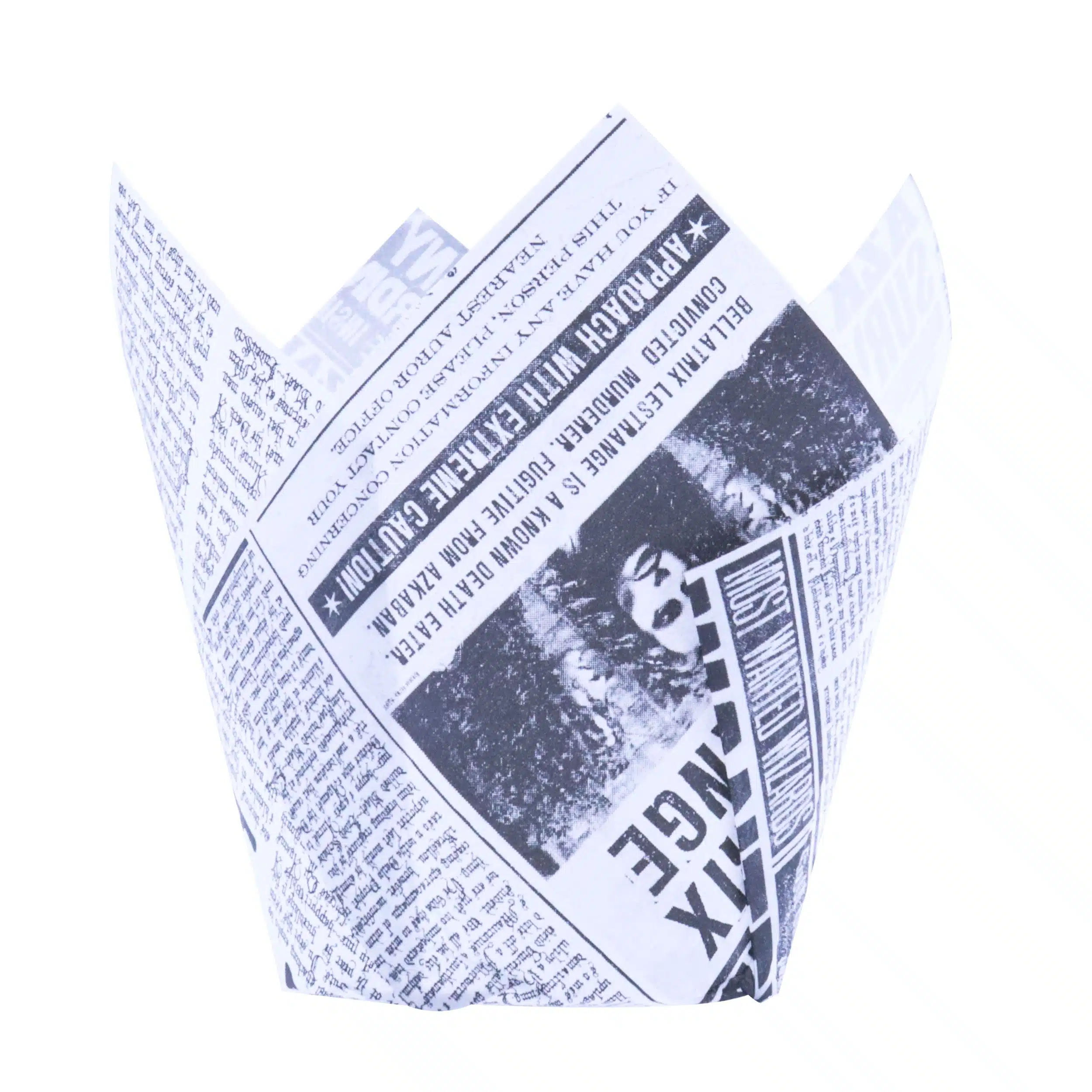 Mooie tulp cupcake of muffinvormen met bedrukking van de Daily Prophet uit de Harry Potter boeken en films.