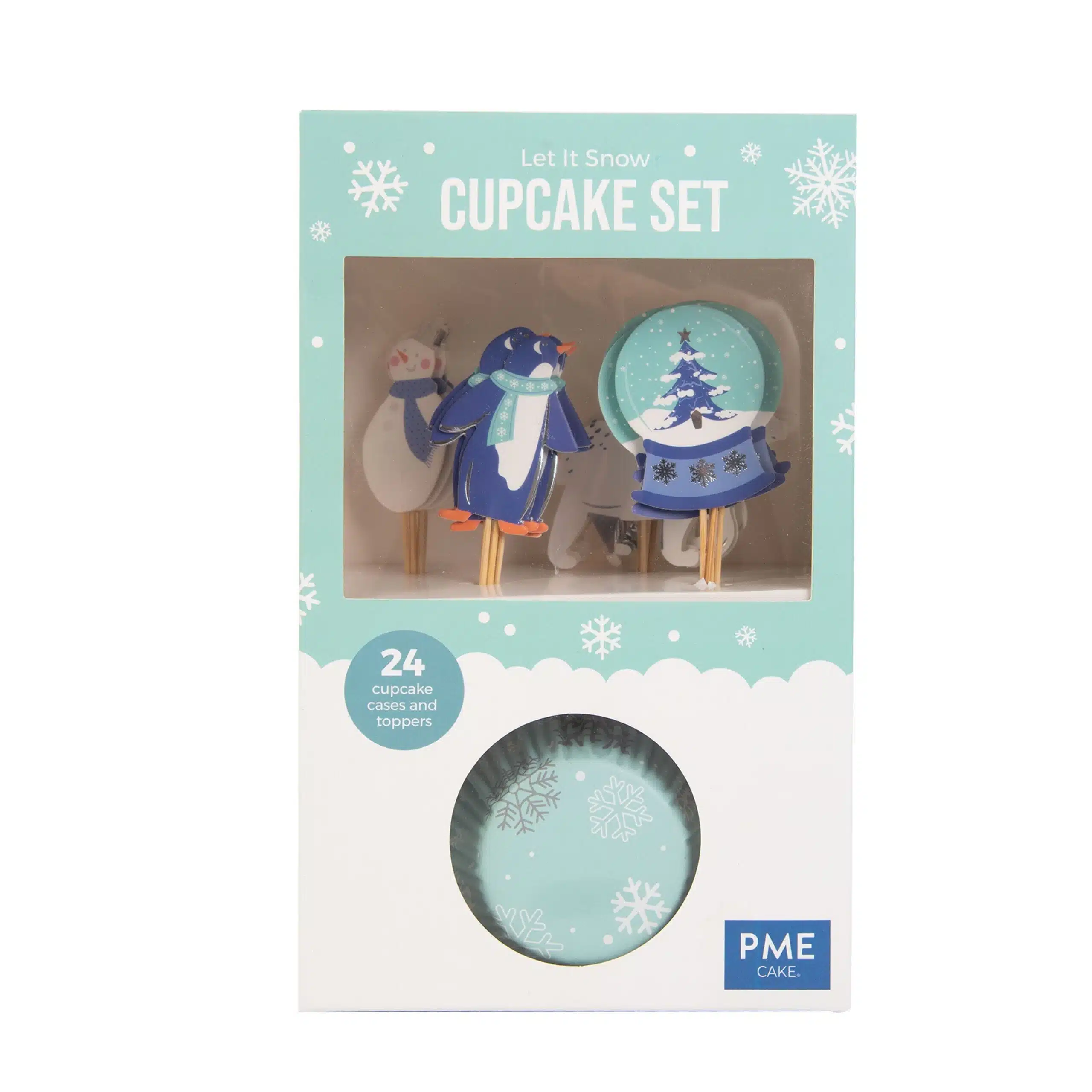 Leuk voor het kerstdiner op school deze mooie cupcake bakjes met bijpassende prikkers in winterse sferen!