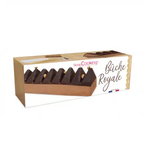 Gebruik deze mooie mal om voor de feestdagen een mooie bûche te maken van bijvorbeeld mousse, ijs of bavarois. Bij de mal is een recept in begrepen. De mal lijkt op een reep van Toblerone, dus misschien een leuk idee om die smaak toe te voegen.