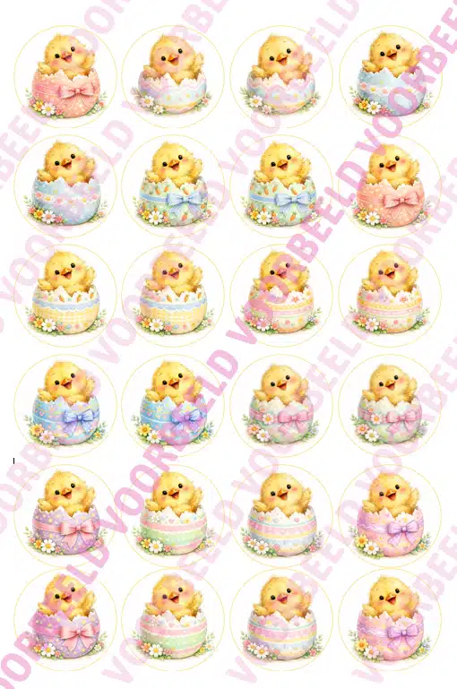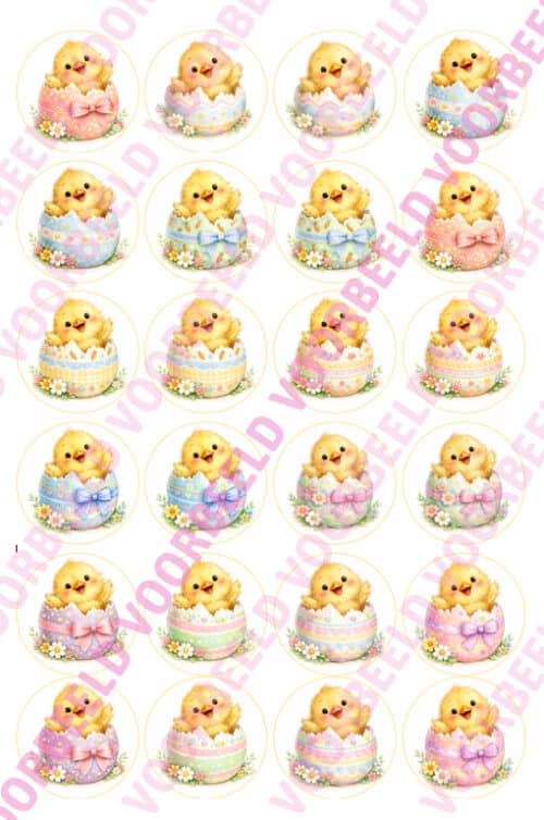 Eetbare Cupcakeprint Happy Chicks – 24 cupcake rondjes