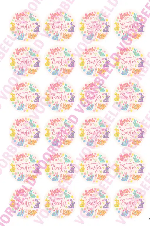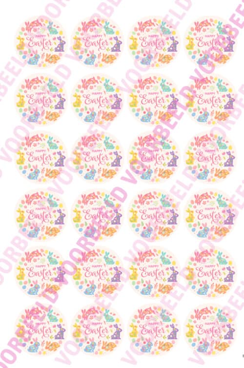Eetbare Cupcakeprint Happy Easter Pastel Bunny’s – 24 cupcake rondjes