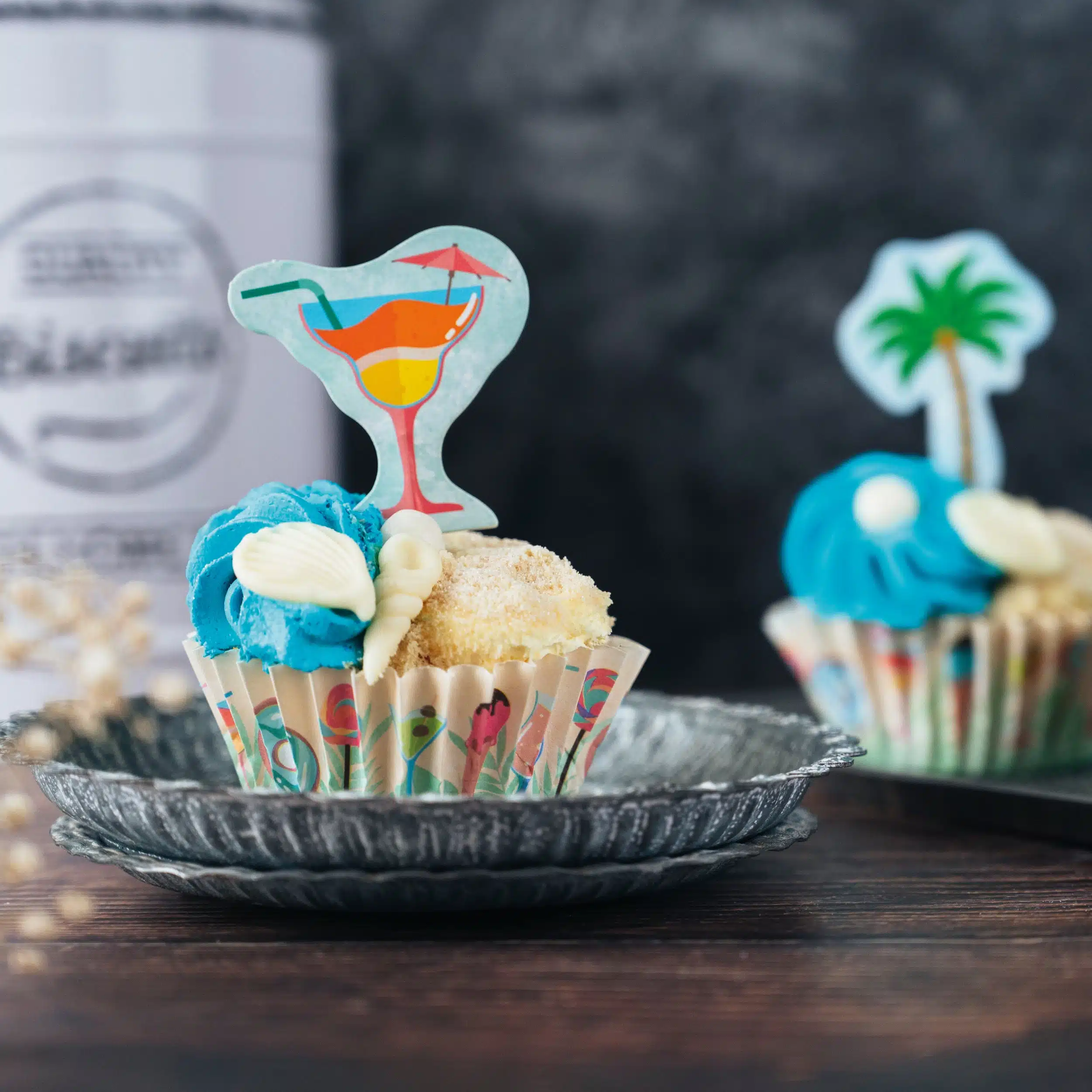 Leuk cupcake pakket met cupcakebakjes en prikkers in zomers thema met onder andere flamingo’s, palmbomen, ananas en cocktails.