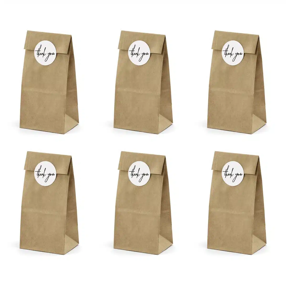 Deel traktaties uit met de PartyDeco Traktatie zakjes gemaakt van kraft papier. De verpakking bestaat uit 6 traktatie zakjes en 6 Thank you stickers. Deze PartyDeco Traktatie zakjes zijn perfect voor feestjes en het uitdelen van traktaties tijdens verjaardagen!