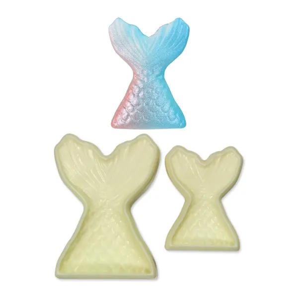 Met deze Jem Pop It moulds maak je gemakkelijk twee maten zeemeermin staarten! De decoraties van fondant, gum paste of modelling paste zijn ideaal voor het versieren van taarten, cupcakes, koekjes en meer. Deze tweedelig set is te gebruiken voor het maken van decoraties van gum paste, modelling paste en fondant. Hoe gebruik je deze uitsteker: Plaats de uitsteker in de JEM Pop It Pad. Leg er uitgerold fondant overheen, rol hierover heen met een rolstok. Snij de vorm uit. Druk met je vingers op de fondant voor de details. Verwijder het fondant van de uitsteker en laat drogen. Large: 37mm x 54mm Small: 26mm x 39mm. Inhoud: 2 uitstekers.