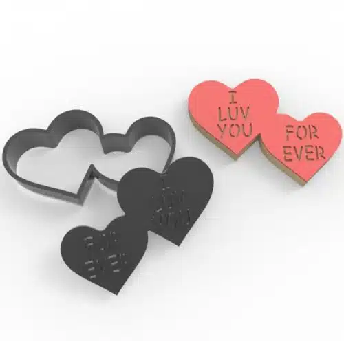 Leuk voor jouw Valentijn koekjes deze dubbel hartvormige uitsteker met impressie van de tekst “I Luv You Forever”. Gebruik de impressie in fondant of marsepein en plak dit op het koekje of plaats de impressie rechstreeks in het koekdeeg.