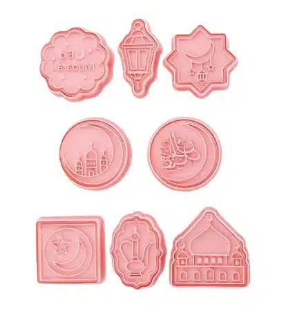 Leuke set met uitstekers met impressie in Eid Mubarak thema voor het maken van koekjes met impressie of fondant/marsepein decoraties voor op taart, cupcakes, cakepops en macarons.