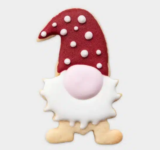 Schattige koekjesuitsteker van een kerstgnome met impressie! Serveer zo of versier met fondant of royal icing.