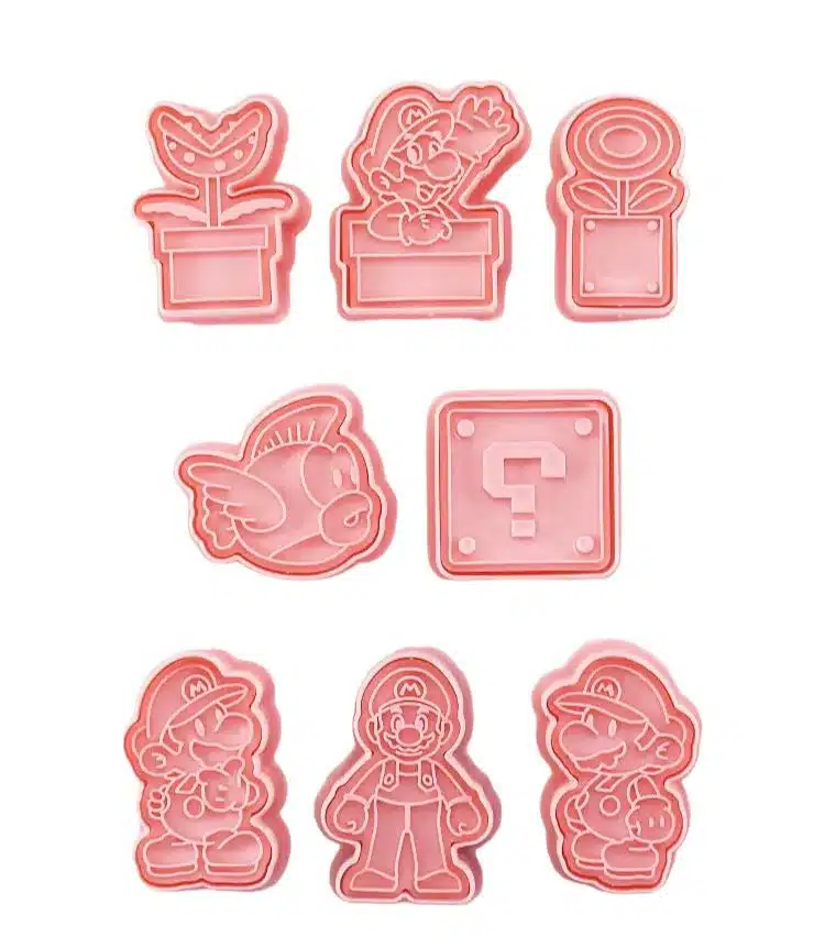 Leuke uitsteker set van Mario poppetjes en Mario Bros game items, zoals een pijp met bloem en een muntblok.