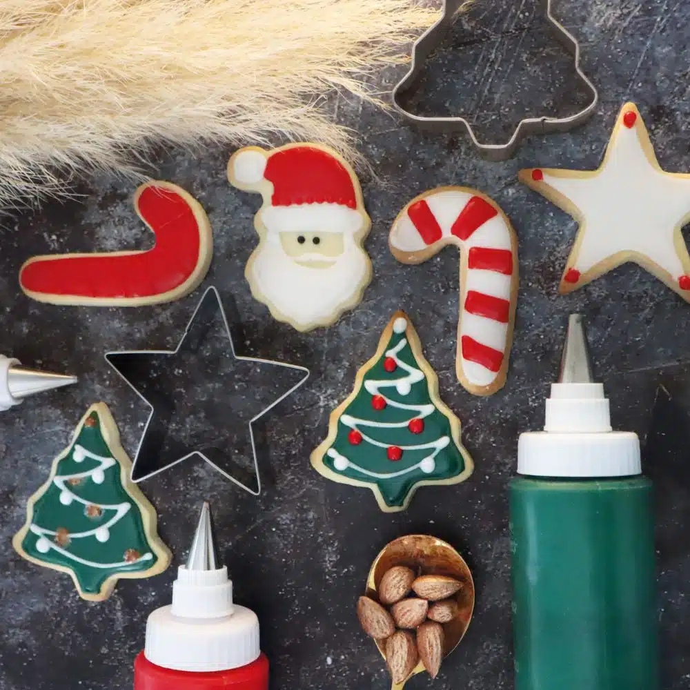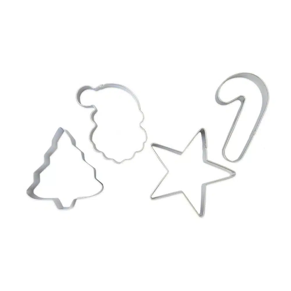 Een kerstkoekjes uitsteker set met 4 verschillende uitstekers om uw koekjes of koekdeeg te snijden en uw gasten te verwennen tijdens de feestdagen! De candy cane, kerstboom, Kerstman hoofd en Kerstster.
