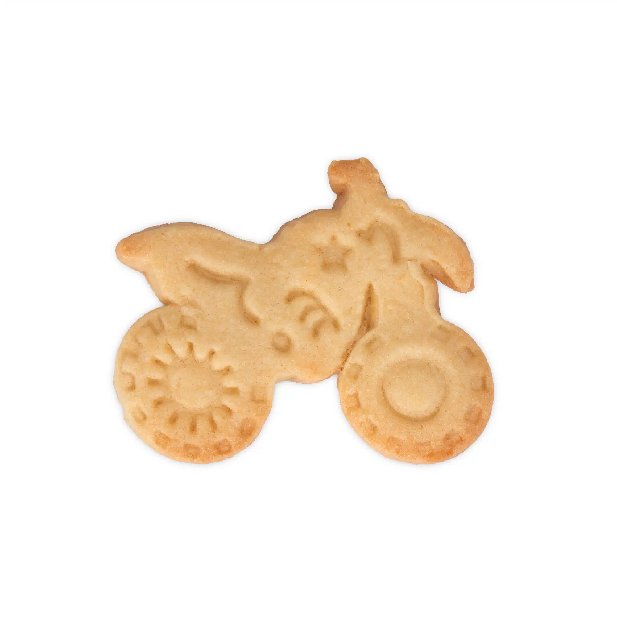 Stoere Städter koekjesuitsteker met impressie van een Crossmotor. Geschikt voor koekjes, maar ook voor fondant en marsepein. Afmeting: 7 cm