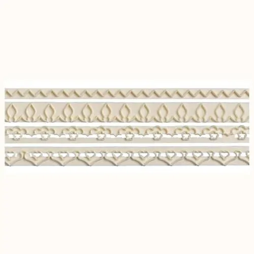 Set van 4 verschillende rechte frill uitstekers met leuke motieven, om mooie sierranden mee te maken. Op de foto kun je zien welke motieven er zijn. In elke gewenste breedte te maken.