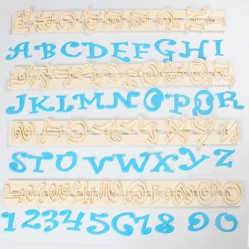 De FMM Chunky Funky Alphabet & Numbers tappit set is een robuuste variant van de Funky tappits. Deze liniaal vormige uitsteker set is ideaal om letters en cijfers te maken. Dit is de hoofdletter set, compleet van A t/m Z en 0 t/m 9. Formaat van de letters is circa 2 cm. De set bestaat uit 4 linialen en een ingesloten Engelse instructie. Deze liniaal werkt het beste als je de marsepein of fondant (gemend met wat tylo poeder) goed door kneed en daarna zeer dun uitrolt. De gewenste letter uitdrukken en daarna uit de liniaal kloppen.